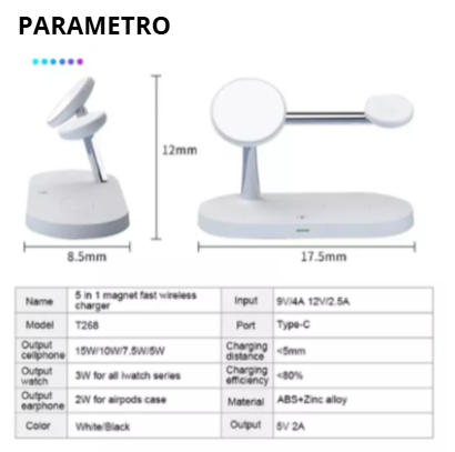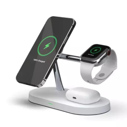 Com design dobrável, magnético e moderno, ele carrega simultaneamente seu iPhone, Apple Watch e AirPods sem fios, sem bagunça e com a velocidade que você precisa. É o acessório perfeito pra quem valoriza praticidade, eficiência e um visual limpo no dia a dia.