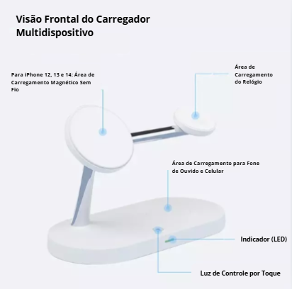 Você ainda perde tempo procurando carregadores diferentes pra cada dispositivo? O Carregador Magnético 3 em 1 Premium foi feito pra simplificar sua rotina e deixar seu espaço muito mais organizado.