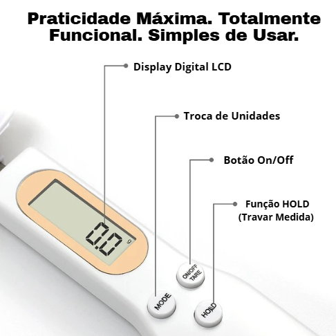 Simples de usar, prática e elegante, essa colher balança transforma qualquer preparo em uma experiência precisa, organizada e sem sujeira.